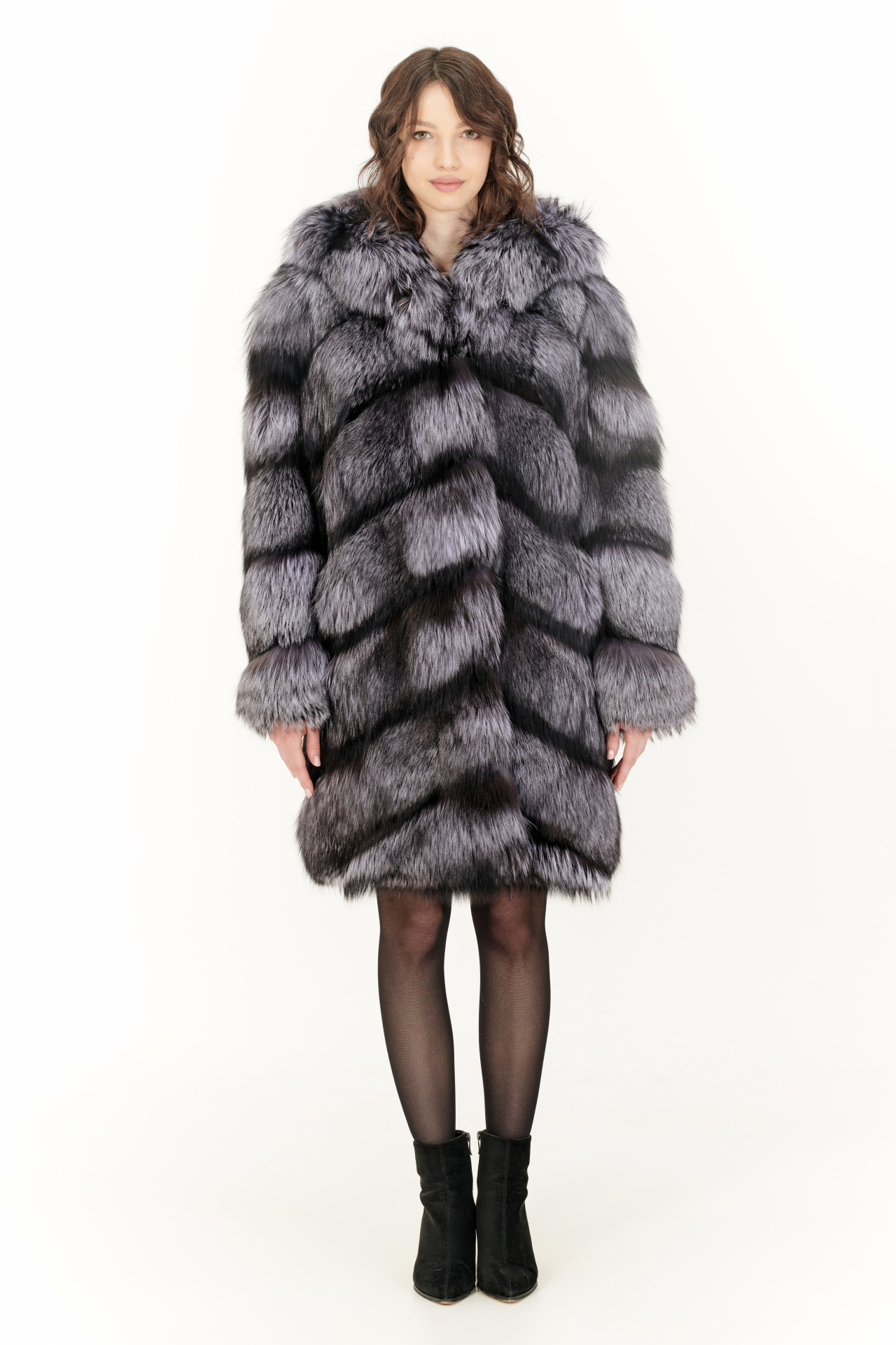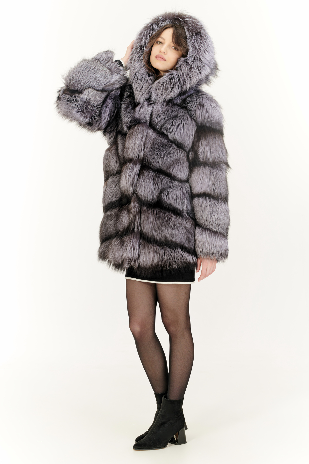 Шуба из меха лисицы чернобурой